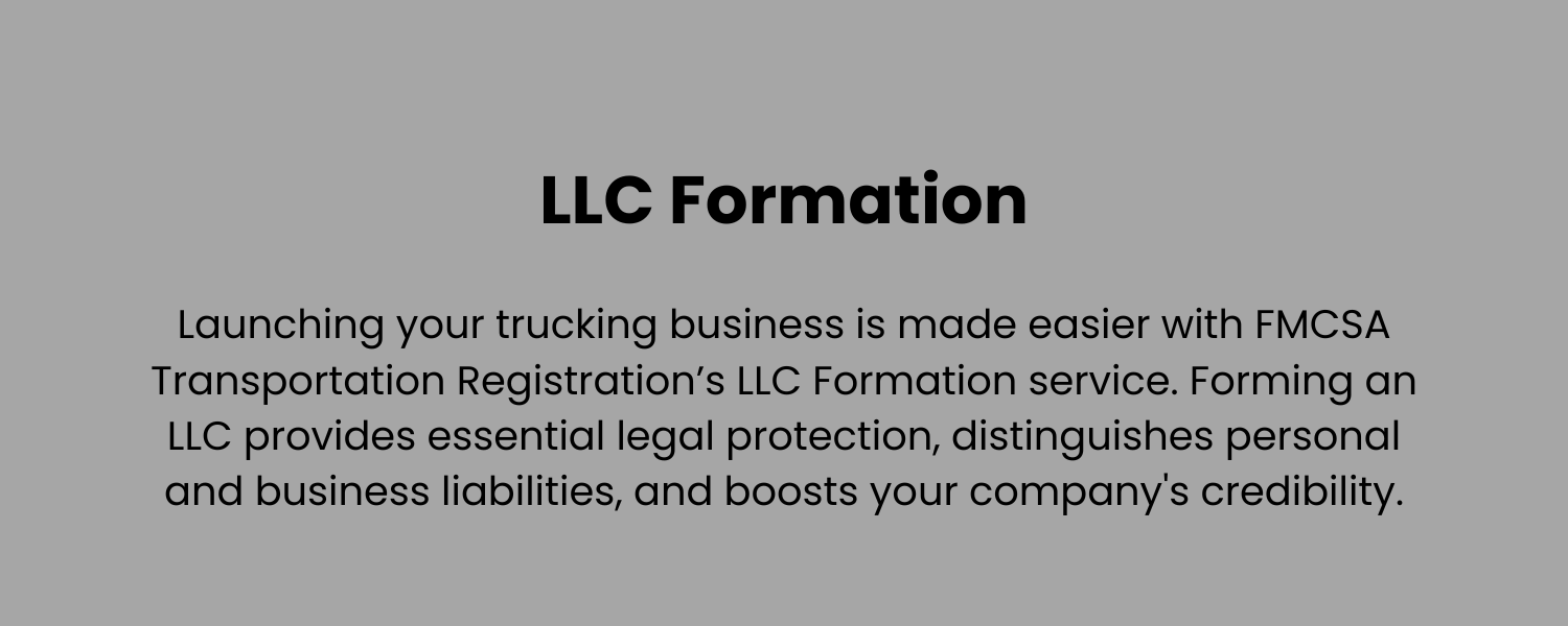 FMCSA Transportation Registration, LLC offers reliable trucking industry solutions, ensuring accurate and prompt transaction handling to minimize downtime. Expert teams guide clients through industry regulations and compliance requirements, guaranteeing legal compliance and operational readiness. Specializing in expediting new trucking business launches, FMCSA Transportation Registration, LLC manages all Authority and Compliance documentation, including USDOT number, MC number, BOC-3, UCR, Driver Qualifications, EIN, and LLC. This comprehensive approach ensures seamless business operations, allowing clients to focus on their goals without paperwork delays. Trust FMCSA Transportation Registration, LLC for efficient trucking industry navigation and compliance solutions.